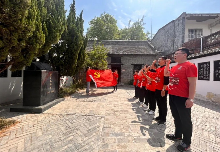 在董天知將軍的雕像前,參加活動的黨員整齊列隊,懷著無比崇敬的心情,莊嚴地舉起右手,重溫入黨誓詞。“我志愿加入中國共產(chǎn)黨……”鏗鏘有力的誓言響徹故居上空,久久回蕩。這不僅是一次對革命先烈的莊嚴告慰,更是黨員們對自己初心使命的再次堅定與強化。