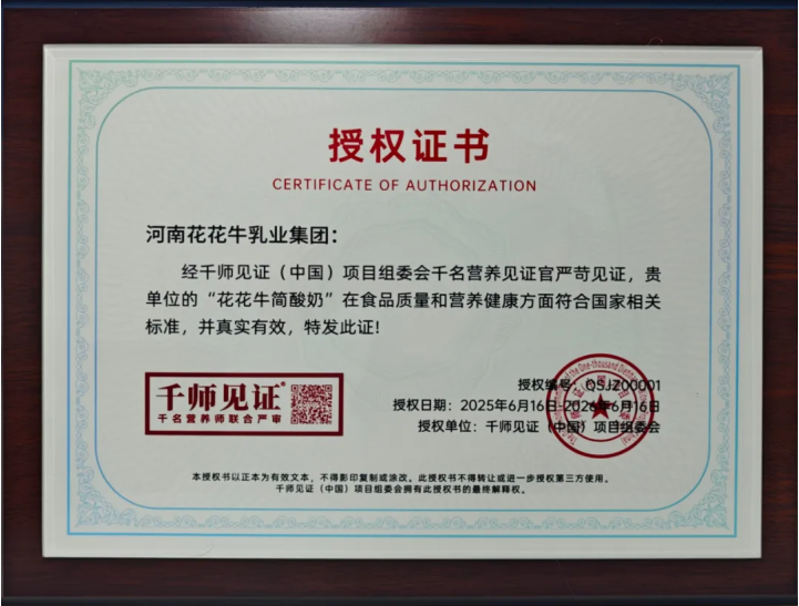 2025年7月2日上午,千師見證(中國)項目組委會項目總策劃、河南食育科學研究院院長馮梓恒一行蒞臨河南花花牛乳業(yè)集團股份有限公司進行交流考察活動,并舉行授牌儀式。河南花花牛乳業(yè)集團黨委委員、副總經(jīng)理王東升及相關(guān)部門負責人熱情歡迎。
