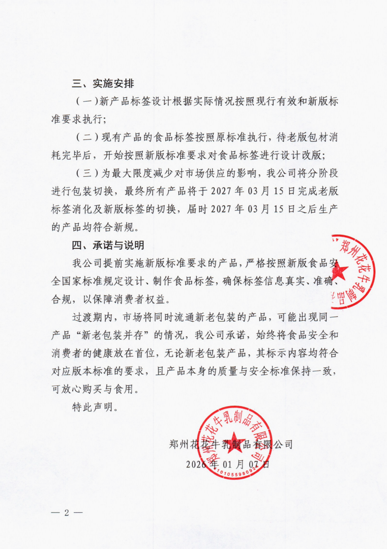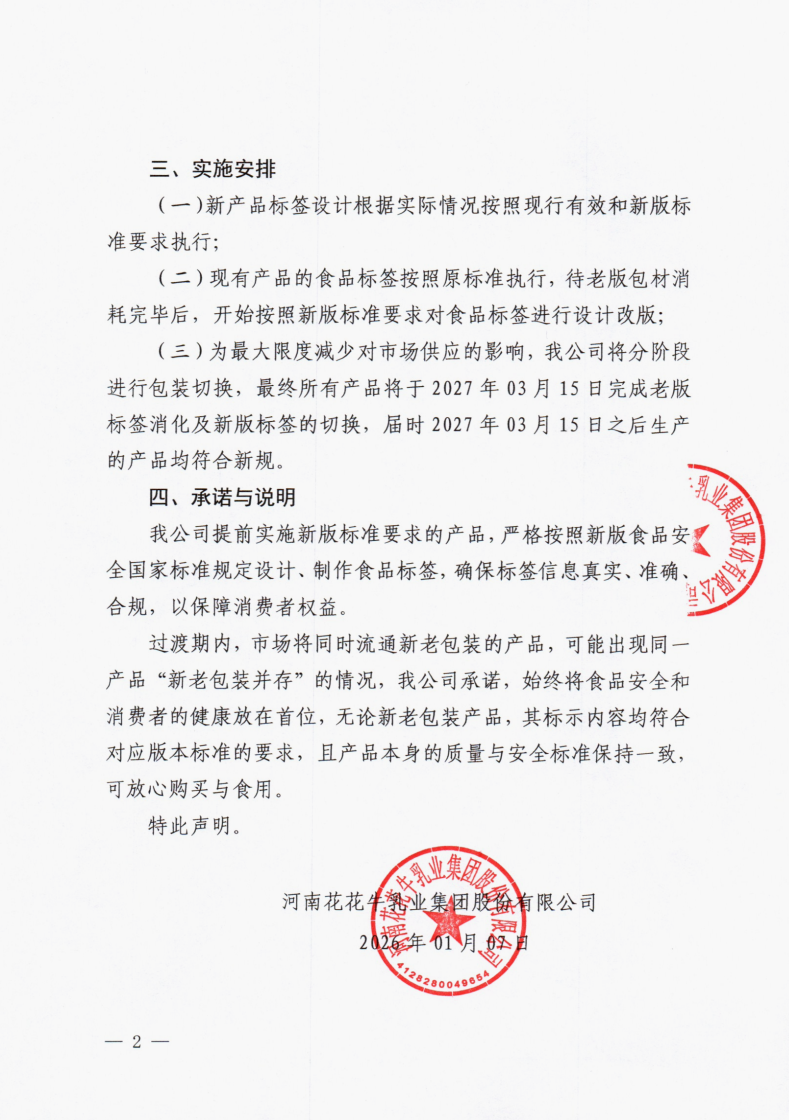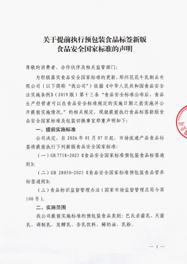 關于提前執(zhí)行預包裝食品標簽新版食品安全國家標準的聲明